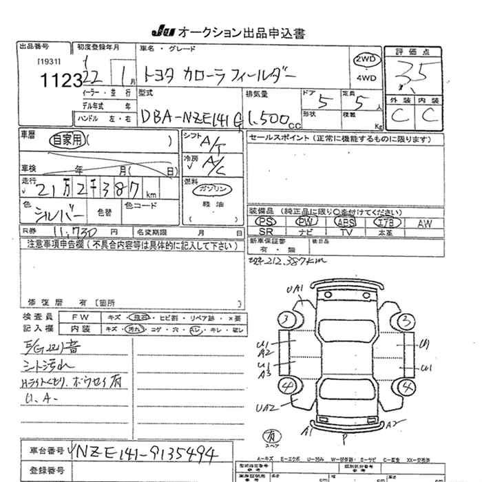 TOYOTA COROLLA FIELDER - лот 1123