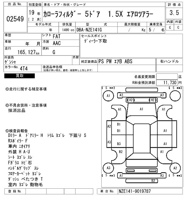 TOYOTA COROLLA FIELDER - лот 2549