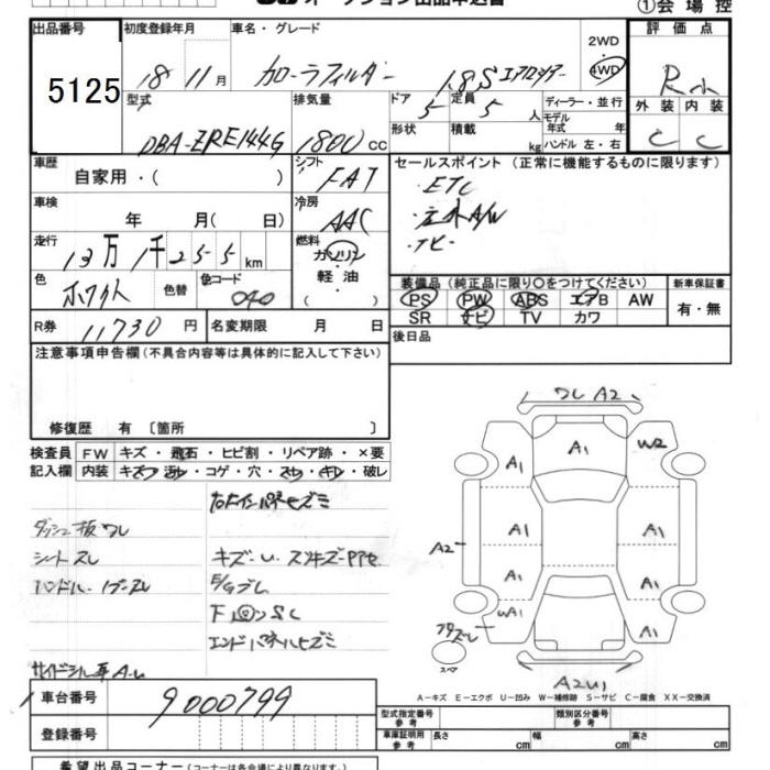 TOYOTA COROLLA FIELDER - лот 5125
