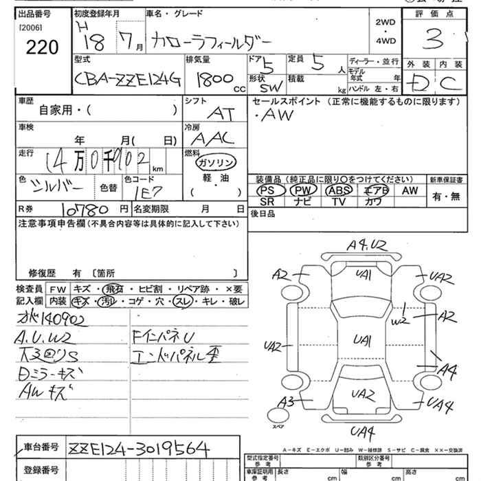 TOYOTA COROLLA FIELDER - лот 220