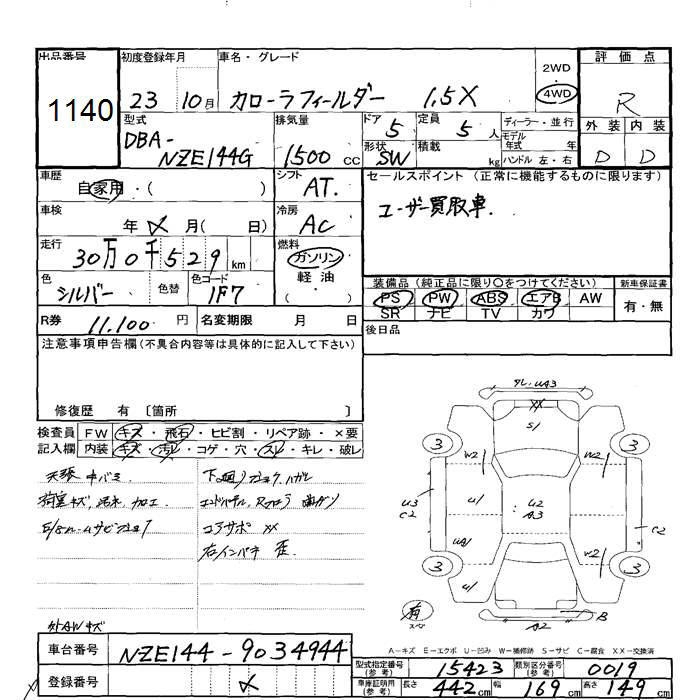 TOYOTA COROLLA FIELDER - лот 1140
