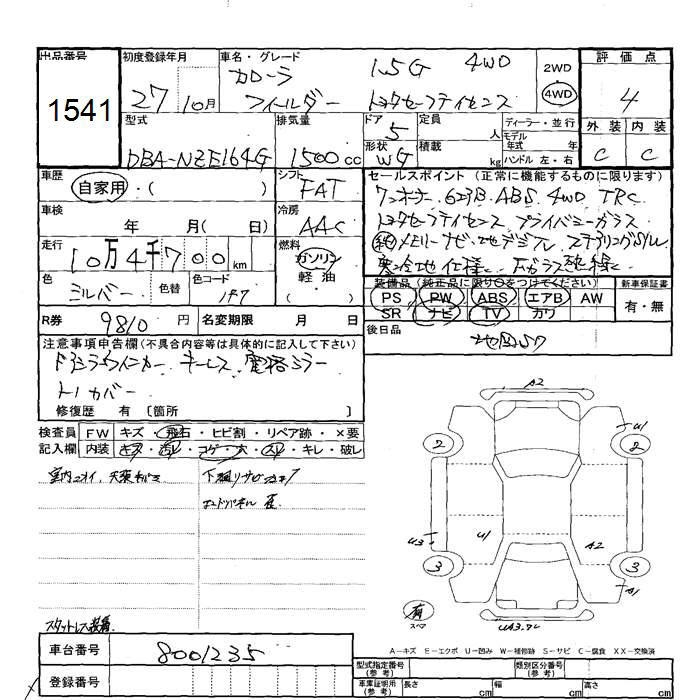 TOYOTA COROLLA FIELDER - лот 1541