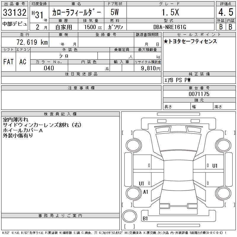 TOYOTA COROLLA FIELDER - лот 33132