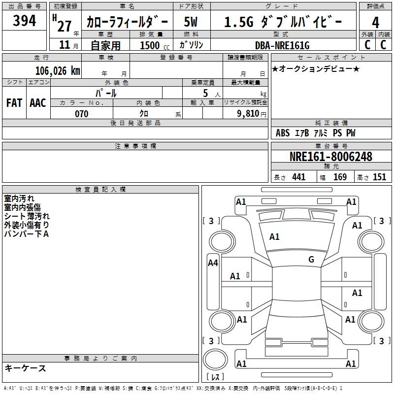 TOYOTA COROLLA FIELDER - лот 394
