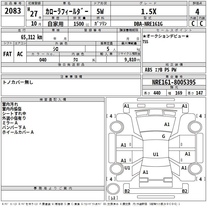 TOYOTA COROLLA FIELDER - лот 2083