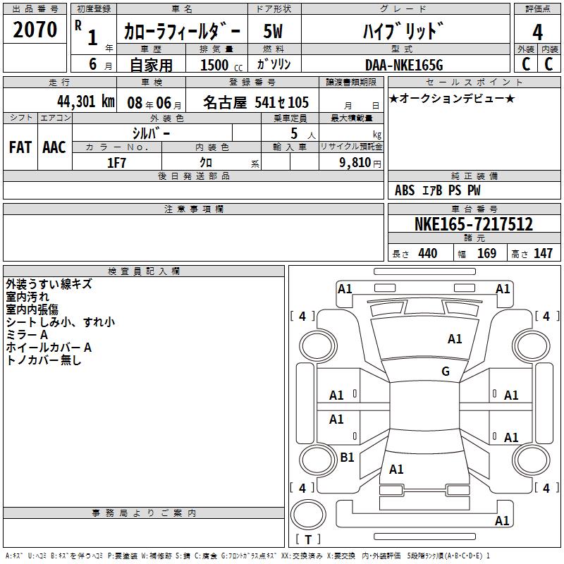 TOYOTA COROLLA FIELDER - лот 2070