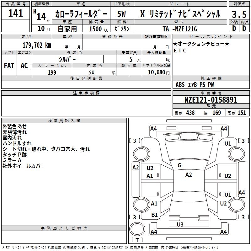 TOYOTA COROLLA FIELDER - лот 141