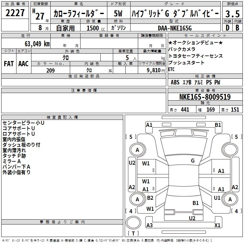 TOYOTA COROLLA FIELDER - лот 2227