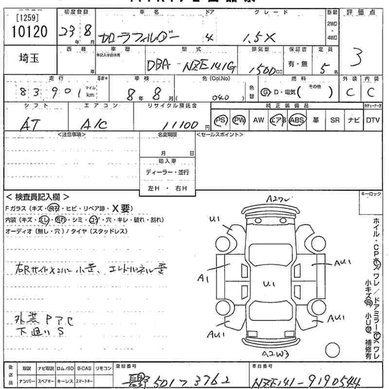 TOYOTA COROLLA FIELDER - лот 10120