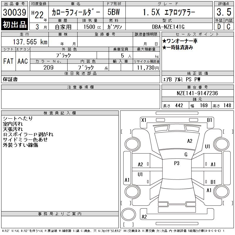 TOYOTA COROLLA FIELDER - лот 30039