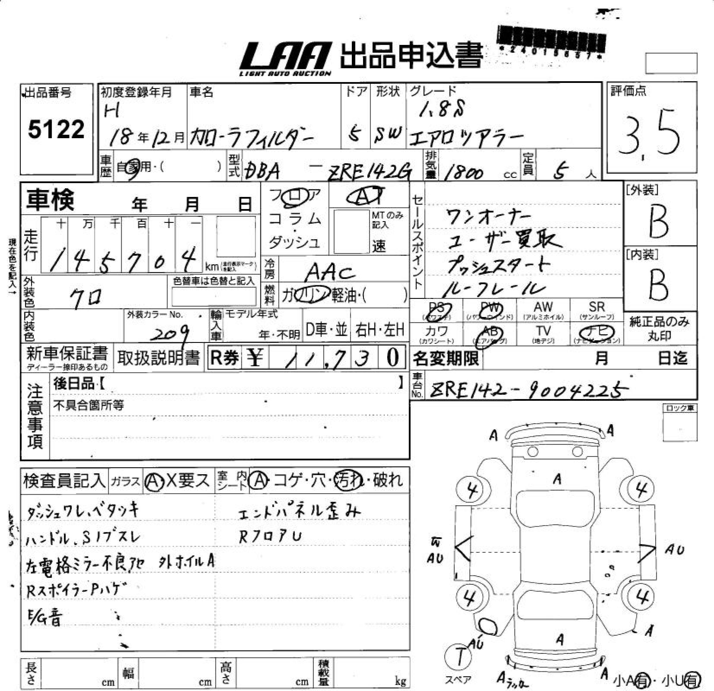 TOYOTA COROLLA FIELDER - лот 5122