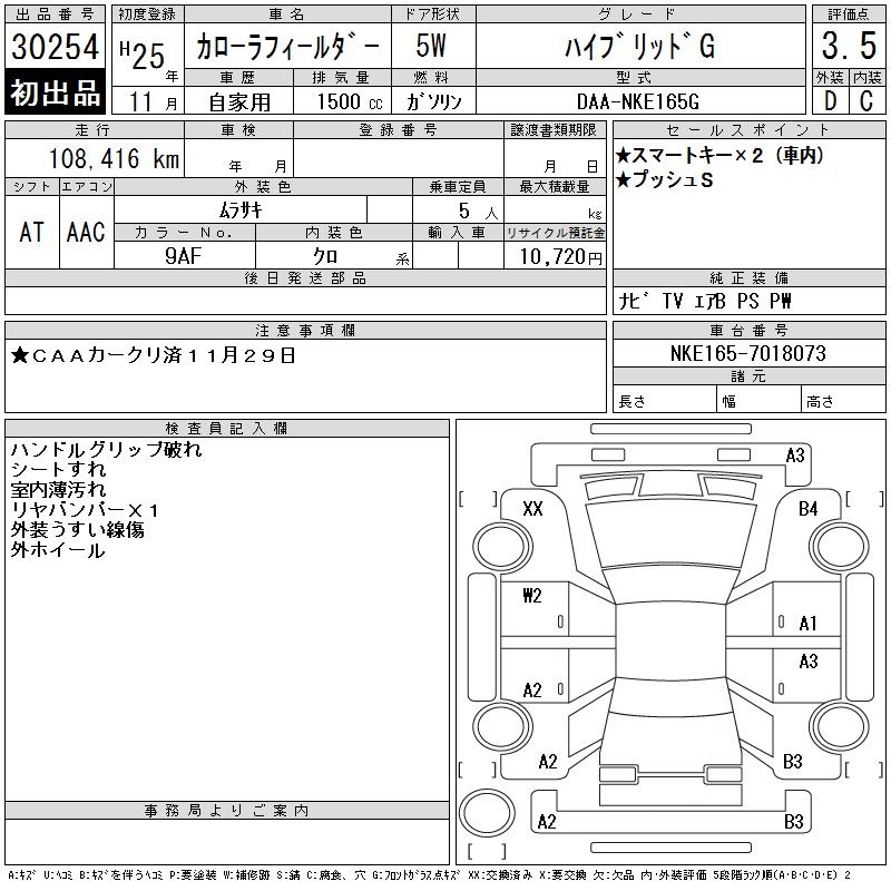 TOYOTA COROLLA FIELDER - лот 30254