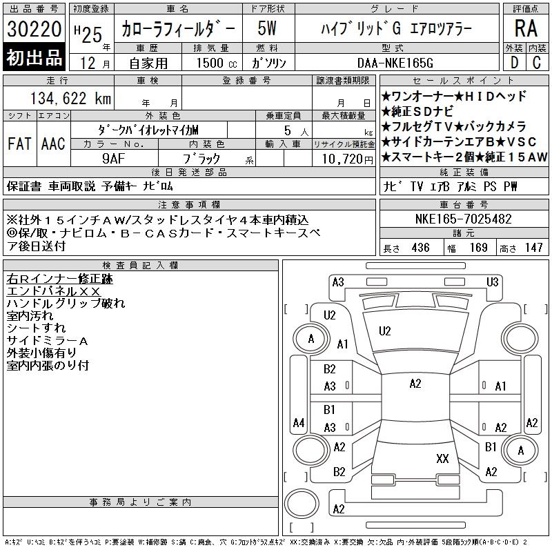 TOYOTA COROLLA FIELDER - лот 30220