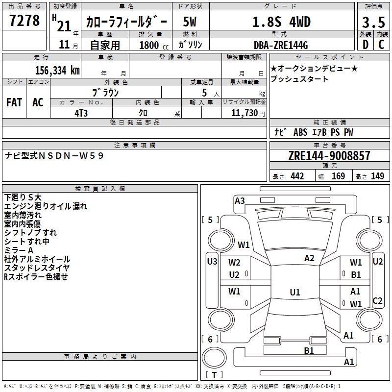 TOYOTA COROLLA FIELDER - лот 7278