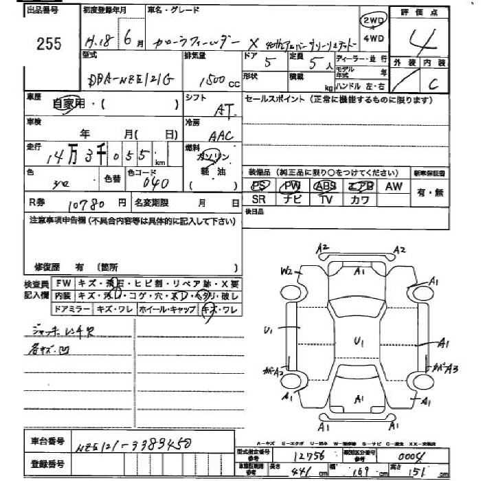 Все аукционы TOYOTA COROLLA FIELDER