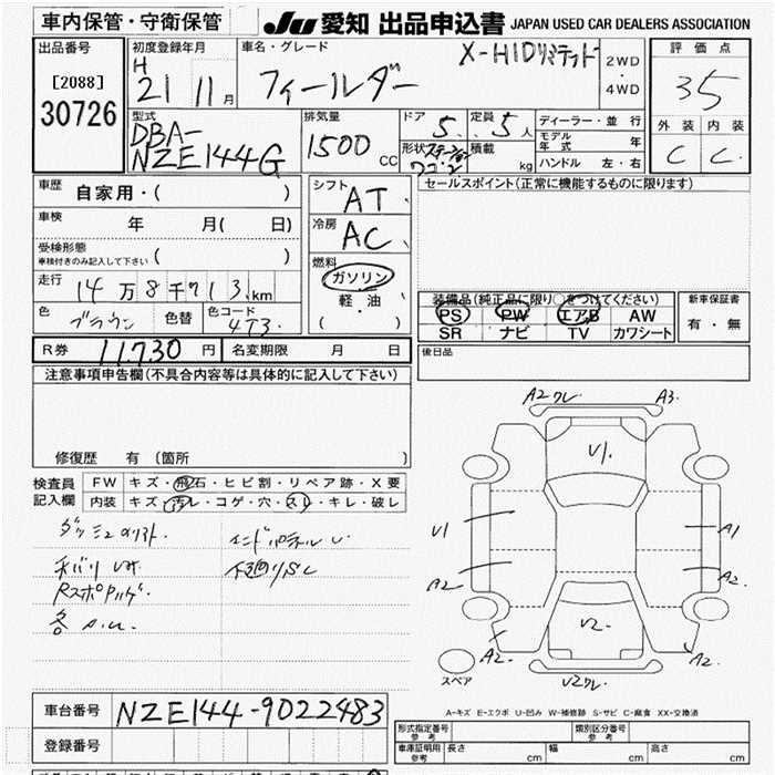 TOYOTA COROLLA FIELDER - лот 30726