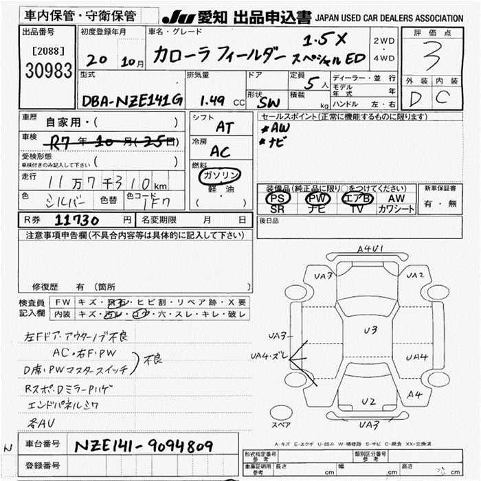 TOYOTA COROLLA FIELDER - лот 30983