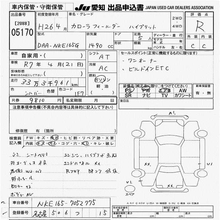 TOYOTA COROLLA FIELDER - лот 5170