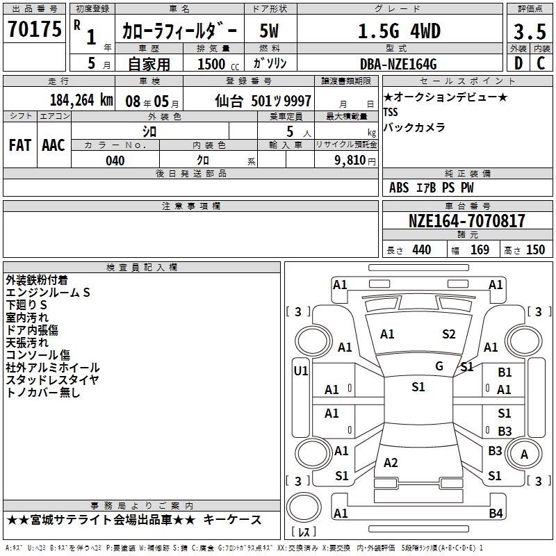 TOYOTA COROLLA FIELDER - лот 70175