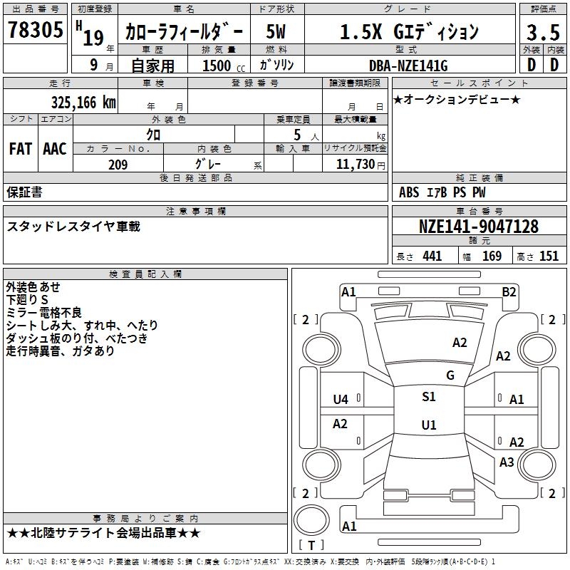 TOYOTA COROLLA FIELDER - лот 78305