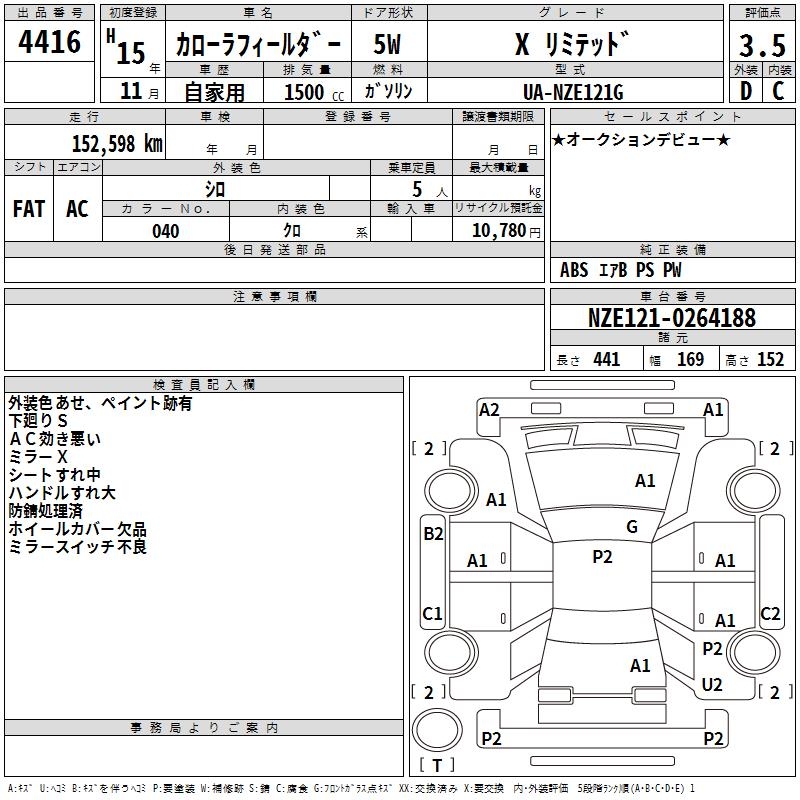 TOYOTA COROLLA FIELDER - лот 4416