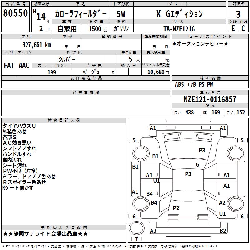 TOYOTA COROLLA FIELDER - лот 80550