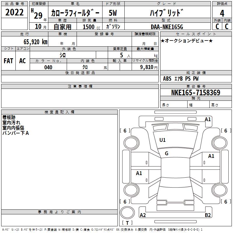 TOYOTA COROLLA FIELDER - лот 2022