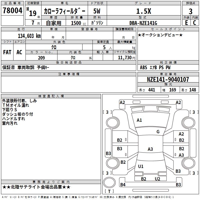 TOYOTA COROLLA FIELDER - лот 78004