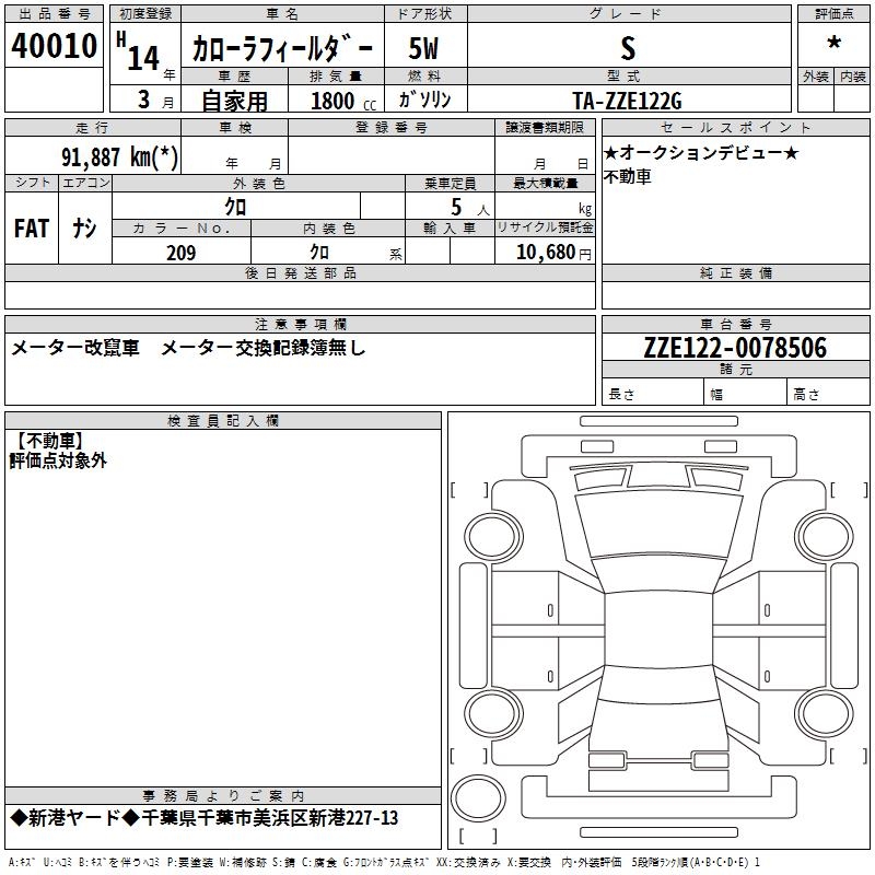 TOYOTA COROLLA FIELDER - лот 40010