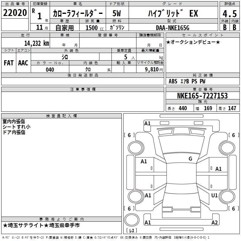 TOYOTA COROLLA FIELDER - лот 22020