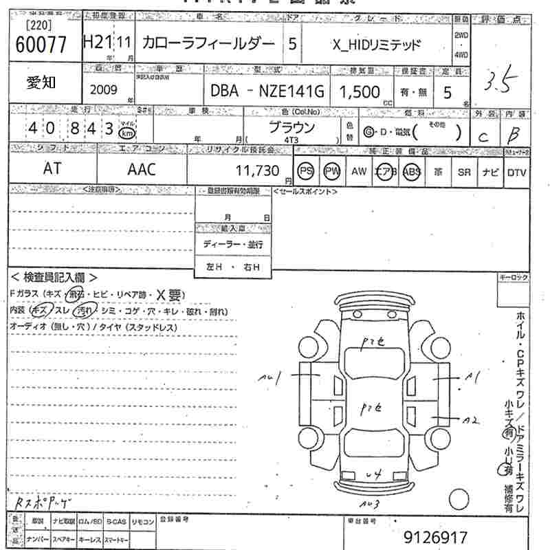 TOYOTA COROLLA FIELDER - лот 60077