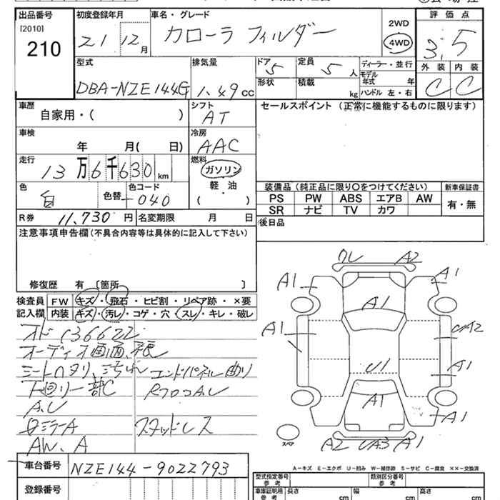 TOYOTA COROLLA FIELDER - лот 210