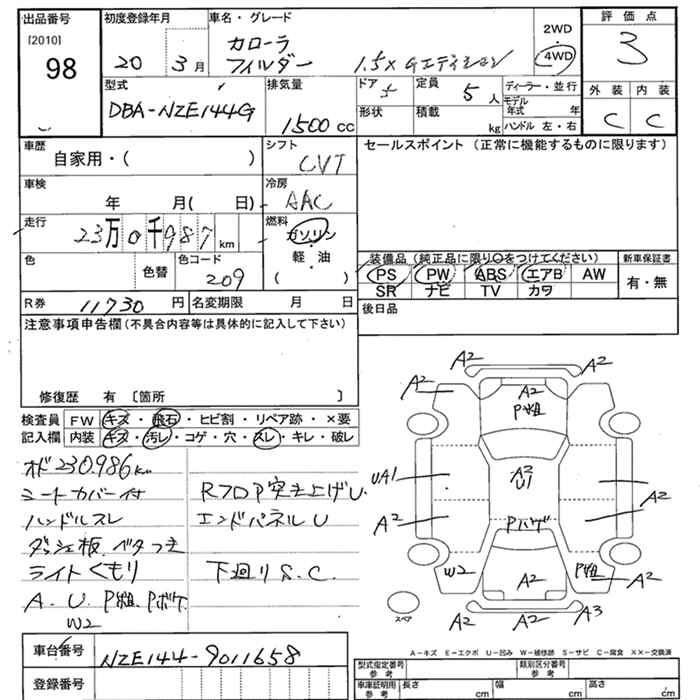 TOYOTA COROLLA FIELDER - лот 98