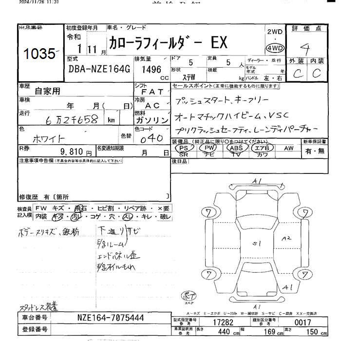 TOYOTA COROLLA FIELDER - лот 1035