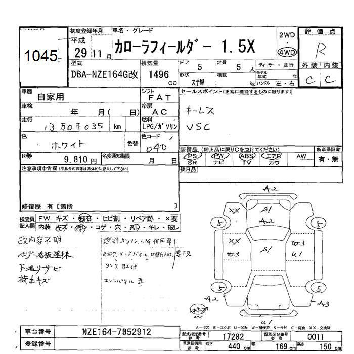 TOYOTA COROLLA FIELDER - лот 1045