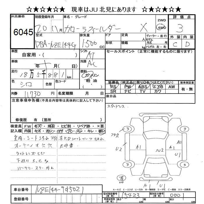 TOYOTA COROLLA FIELDER - лот 6045
