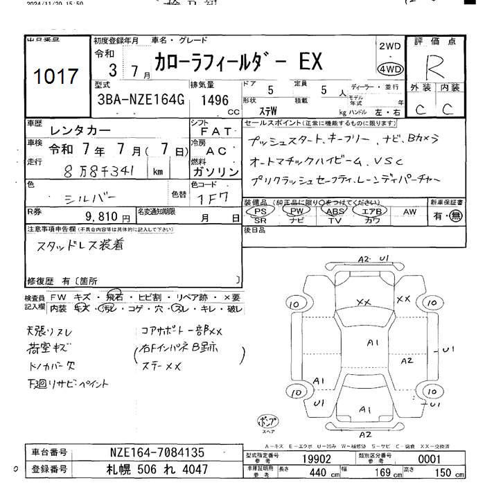 TOYOTA COROLLA FIELDER - лот 1017