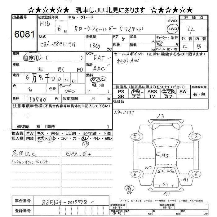 TOYOTA COROLLA FIELDER - лот 6081