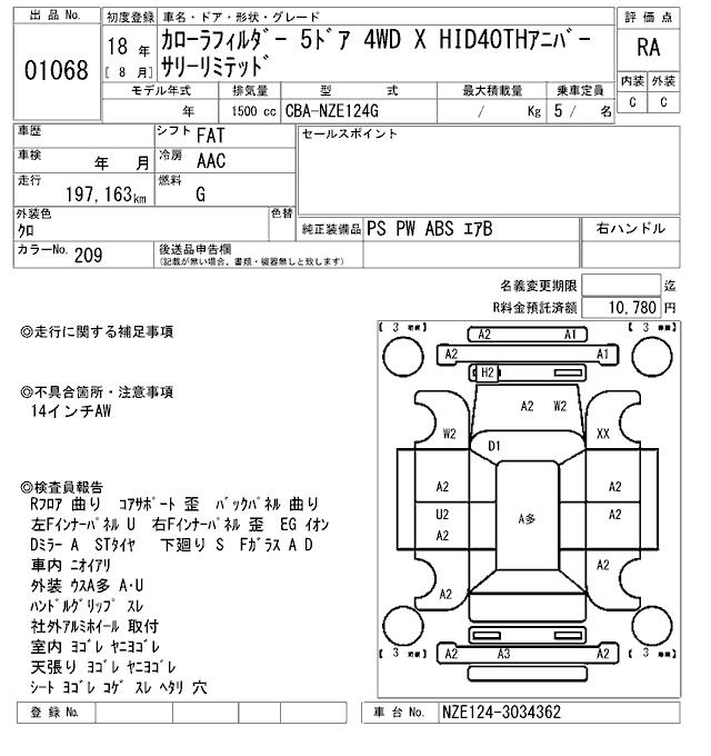 TOYOTA COROLLA FIELDER - лот 1068