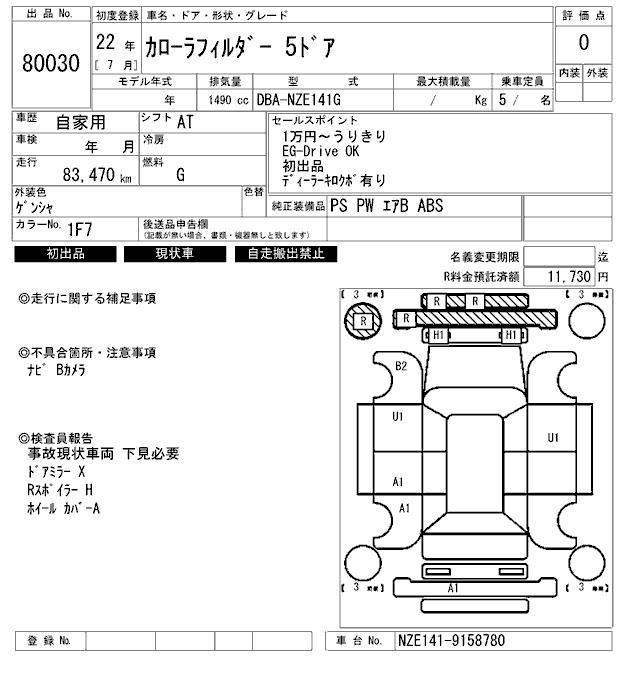 TOYOTA COROLLA FIELDER - лот 80030