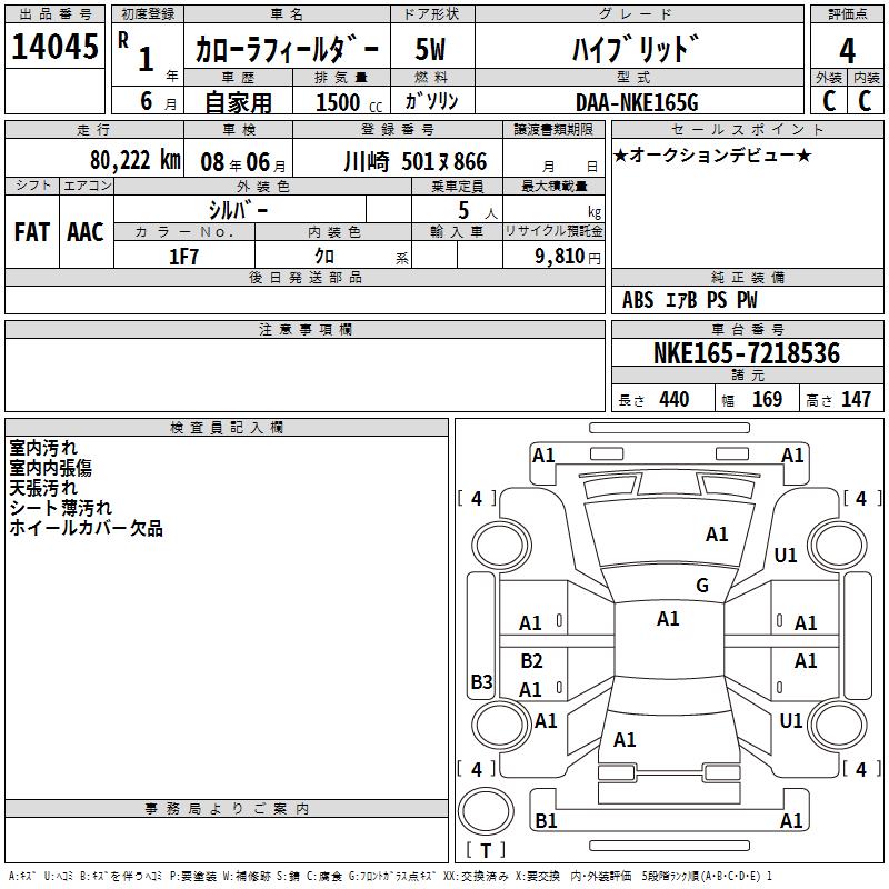 TOYOTA COROLLA FIELDER - лот 14045
