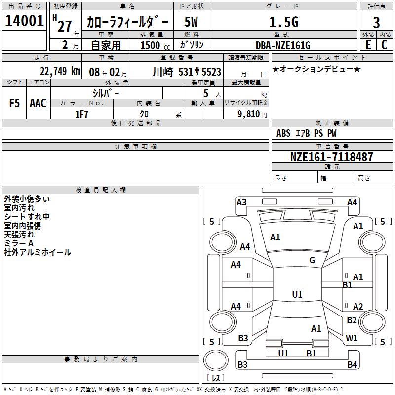TOYOTA COROLLA FIELDER - лот 14001