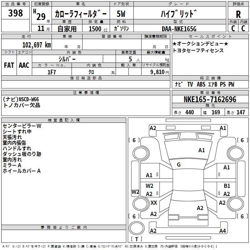 TOYOTA COROLLA FIELDER - лот 398