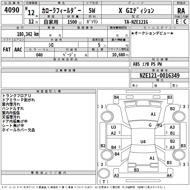 TOYOTA COROLLA FIELDER - лот 4090