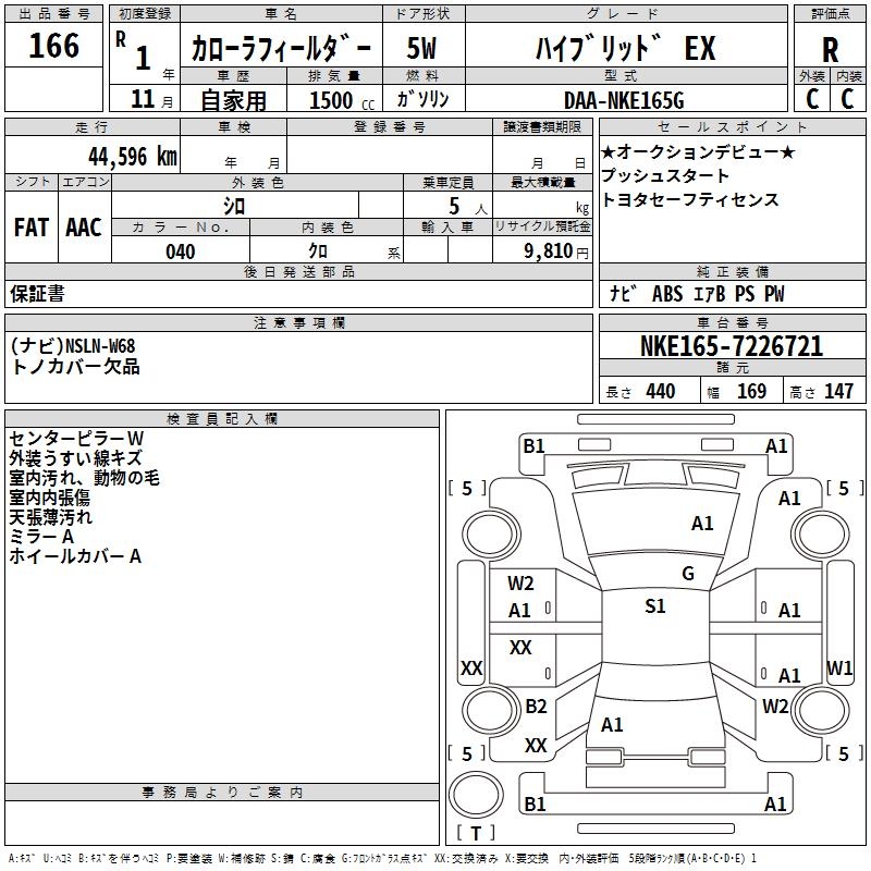 TOYOTA COROLLA FIELDER - лот 166