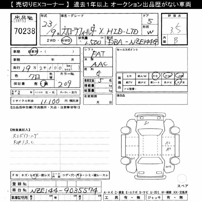 TOYOTA COROLLA FIELDER - лот 70238