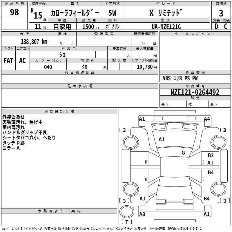 TOYOTA COROLLA FIELDER - лот 98