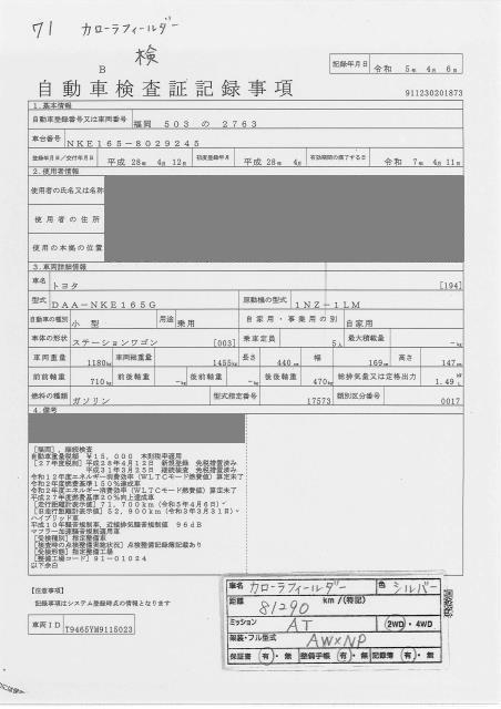 TOYOTA COROLLA FIELDER - лот 71