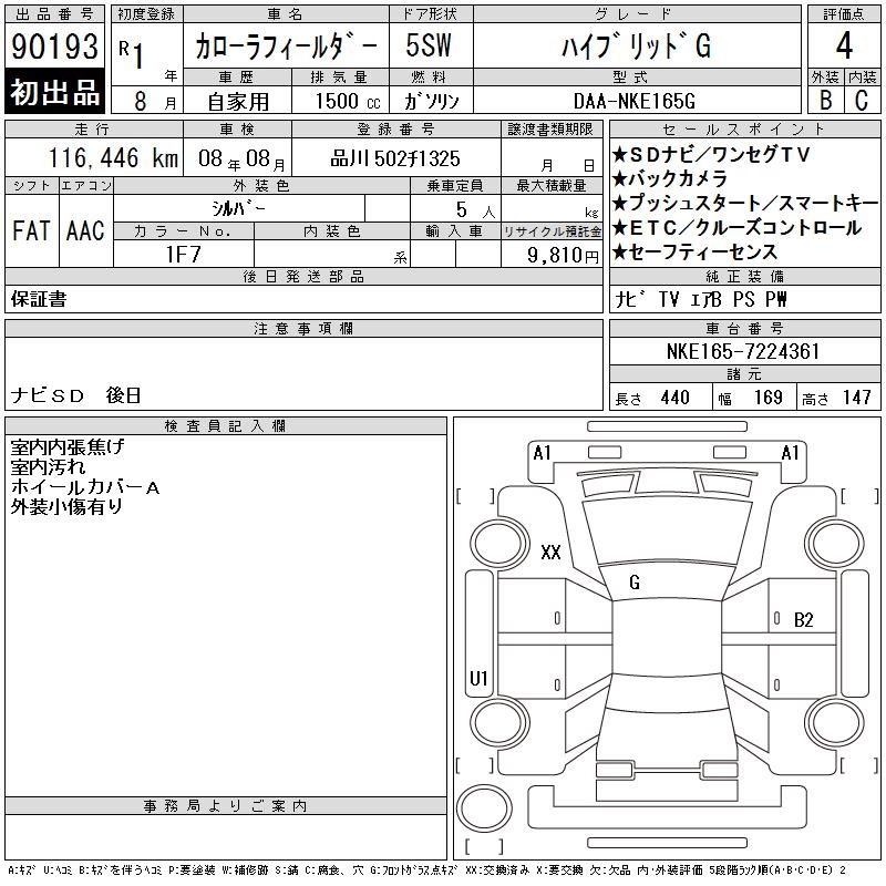 TOYOTA COROLLA FIELDER - лот 90193