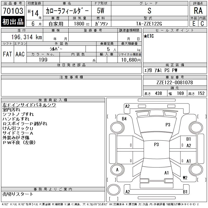 TOYOTA COROLLA FIELDER - лот 70103